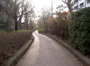 公園の先は、普通の道路になっています。 いかにも鉄道らしい雰囲気があります。 |