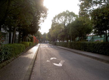 市道駅前通りの先は、文化公園になります。 この周辺は、かつて海軍火薬廠という広大な基地 がありました。 専用線跡は、文化公園通りに転用されていました。 |