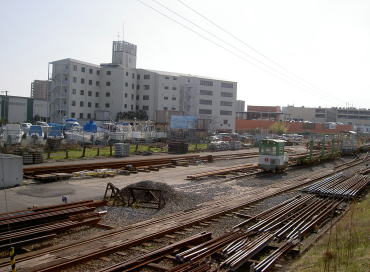 保線基地です。 専用線跡は奥に見えます。 しかし、もう線路はありません。 |