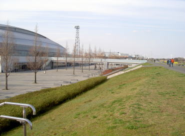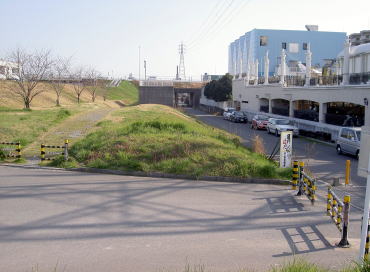 まずは相模石油線跡です。土手の上から見ています。 現在は、馬入ふれあい公園の歩道になっています。 |