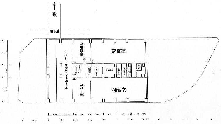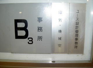 地下3階の案内版。 モノレールの案内は当然のごとく無い。 事務所とあるが、第1ビル関係者によれば、実際に 事務所がある訳ではなく、このユース設計管理事務 所に設備管理を委託しているため、それが分かるよ うに載せているとのこと。 |