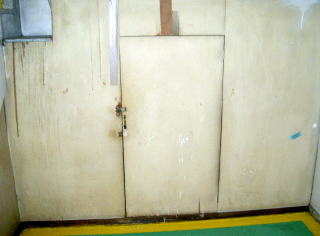 階段を地下2階まで下りると、その下に木の板で閉 ざされた小さなドアがあった。 一部では、これがプラットホームへの入口ではないか と囁かれているが実際は不明。 また、第1ビル関係者でも、これがプラットホームへの 入口なのかどうかは分からないらしい。 |