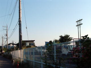 路線はちょうどこの白いフェンスのすぐ側 を通っていた。 |