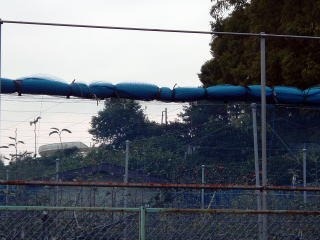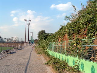 ジャイアンツ球場横のアーチ橋に接近。 こちらは途中で切断されている。 |