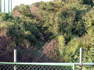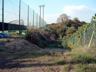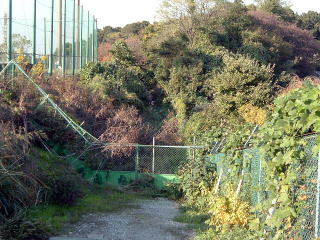 東京ヴェルディ施設から更に先を追う。 軌道跡には大きな土の壁が残る。 |