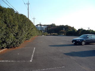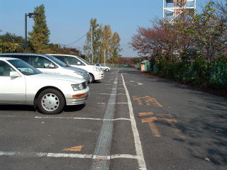 この広い駐車場の中を路線は通った。 右奥には、駐車場駅の跡がある。 |