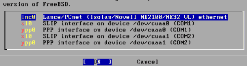 ネットワークカードによっては違った名前で識別されます。(例えば[fxp]とか[rl]とか)