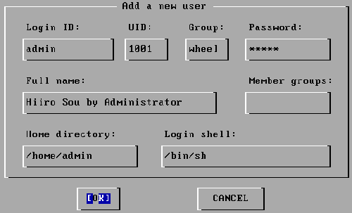 といっても、インストール後いくらでも[/stand/sysinstall]より設定を追加できるので、気にしなくていいです。