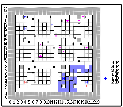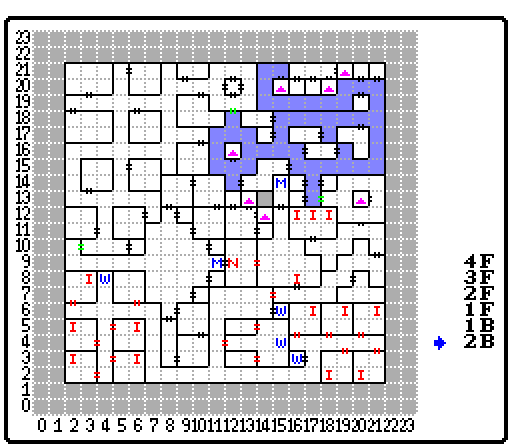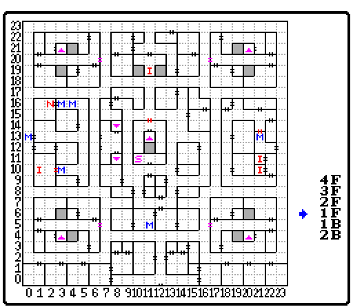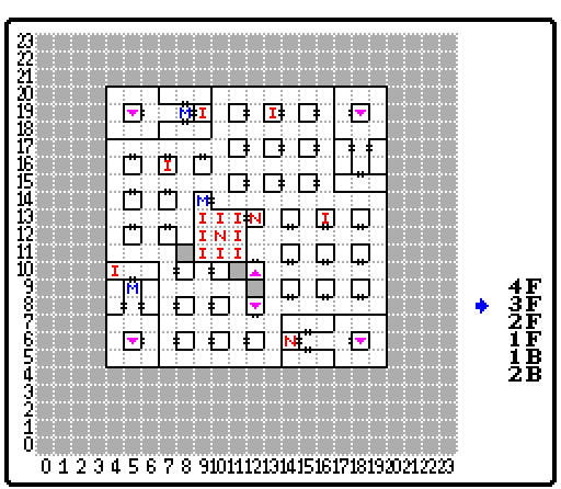 I:地上4階(N14-E12):破壊の剣がある。ラマ御前とガイラスを正しい手順で対処するとアイテム入手前にシュゲン・ラマと戦闘になる。戦闘後に破壊の剣が手に入る。誤った手順だとシュゲン・ラマと戦わないが、アイテム入手の際キャラが一人死亡してしまう。