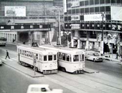 背後に見える江東デパートは、以前は白木屋で、城東電車は、その前から小松川や洲崎に向っていた。城東電車の後を引き継いだ『25』番の電車が、西荒川から日比谷へ向かって行くところである。