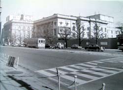 そのうしろのビルは、もともと外国人バイヤー専門に建てられた政府直轄の帝都ホテル。東京オリンピックを控えて昭和36年に建て替えられ、名称もパレスホテルと改められた。