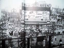 昭和26年、ヤミ市が一掃されて、西口広場に野外ステージが設けられ、バックにネオンサインがつくと、集まる人は変わったが、ますます賑った。ステージの下に「宝くじ売場」や「場外馬券売場」が開設されると、あふれるばかりの人だかりが出来た。