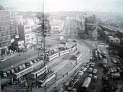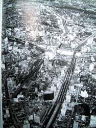 この目の前、未完成の交差点に高架式自動車専用道路を通す橋脚を立て、西ドイツのディウィダーク工法で、起き上がり小坊主のようにバランスを取りながら、通行を妨げず陸橋を架け終えたのは、昭和38年の暮れである。