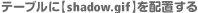 テーブルを組むときに、[shadow.gif]を<td>タグのbackground属性を使って配置します。このとき、<td>タグのサイズ指定は必須です。