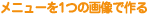 まずは、右図のようにメニューを1つの画像で作ります。このとき、画像の余白とページの背景を同じ色にすることが基本です。背景に壁紙を使う場合は、色調や柄との相性をチェックすることを忘れずに。