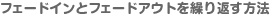 これで、フェードイン・フェードアウトを繰り返す文字列が誕生します。以下のスクリプトを、HTMLの<head>〜</head>内に貼り付けます。 |