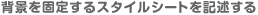 background-position属性では背景画像の位置を左から○ピクセル、上から△ピクセルという具合に指定します。たとえば左から150ピクセル、上から100ピクセルの位置に背景画像を配置し、さらに背景を固定させる場合は、「body{background-attachment:fixed; background-position:150 100;}」と記述します。