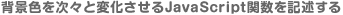 JavaScriptでは、「document.bgColor」プロパティの値を変化させることにより背景色を変更することができます。