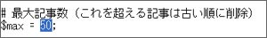 最大記事数を「$max」に設定します。ここで設定した数を超える記事は古い順に削除されていきます。あまりサーバに負荷をかけないよう、100以下の数字を設定するようにしてください |