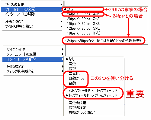 「設定」→「インターレースの解除」→「ボトム->トップフィールド」