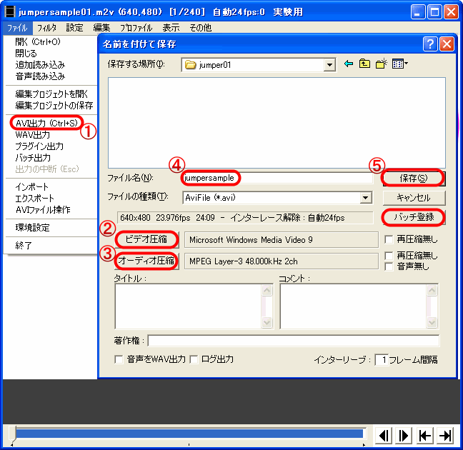 これらのコーデック設定方法に関しては「ジャンパーズホームページ動画コラム」を見てください。