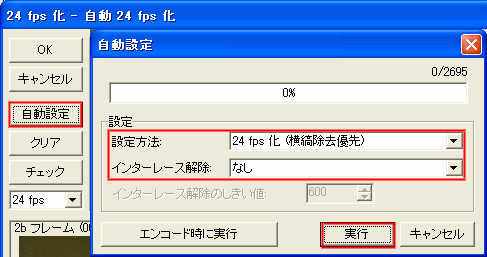 ここは普通のフィルム映画やアニメとして、「24fps化(横縞除去優先)」を選びます。