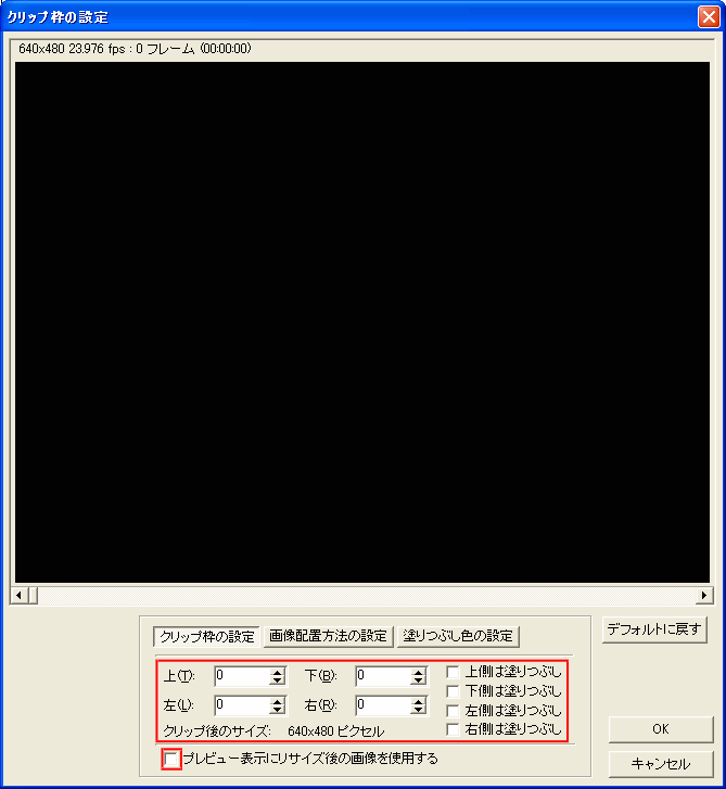 →無効領域や画面端のノイズを切り取るまたは塗りつぶします。