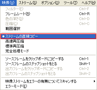 その次に、VirtualDubModでの映像ファイルの扱い方を指定します。