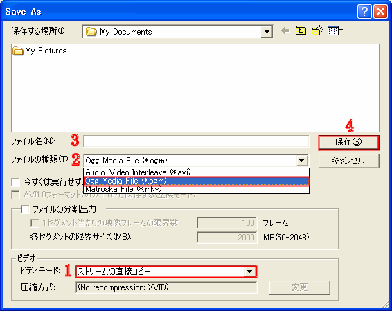 :OGMはWindows Media Video9 VCMのAVIファイルを映像とすることが今の所できません。
