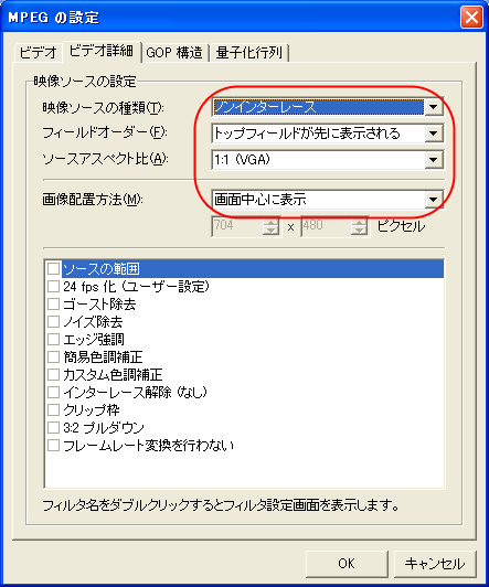 TMPGEncのフィルタもこの時使えます。フィルタリングが必要な場合は使ってください。