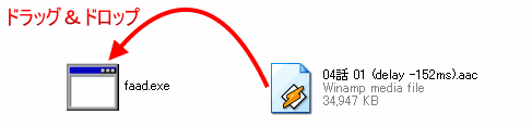 エンコードをはじめる前に、まずはAACをWAVE化してTMPGEncやAviUtlで扱えるようにします。
