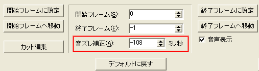 次に、ソースの範囲と音ズレ補正をします(必須)。AACはデフォルトで音ズレしてます。