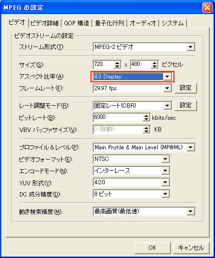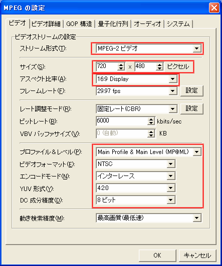 MPEG2にするのは当然です。ここで重要なのは1920×1080や1440×1080を「720×480」にすることです。