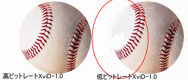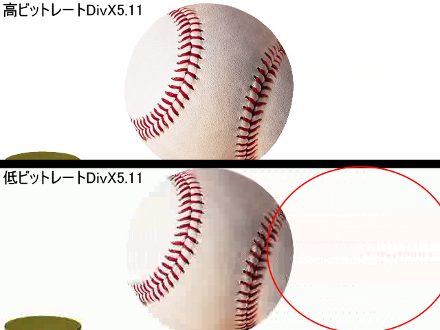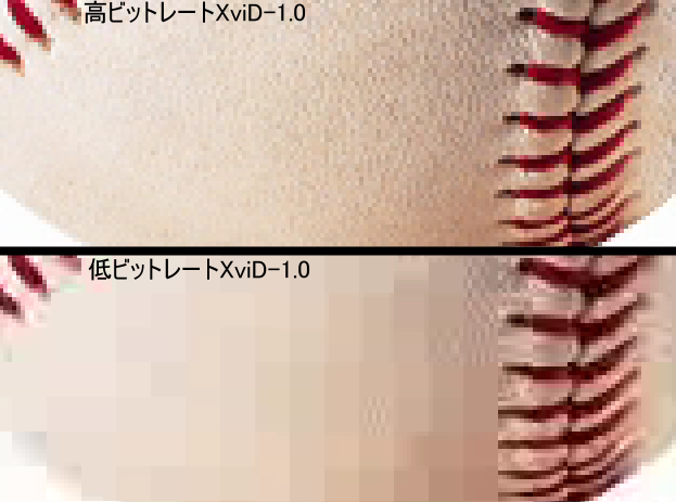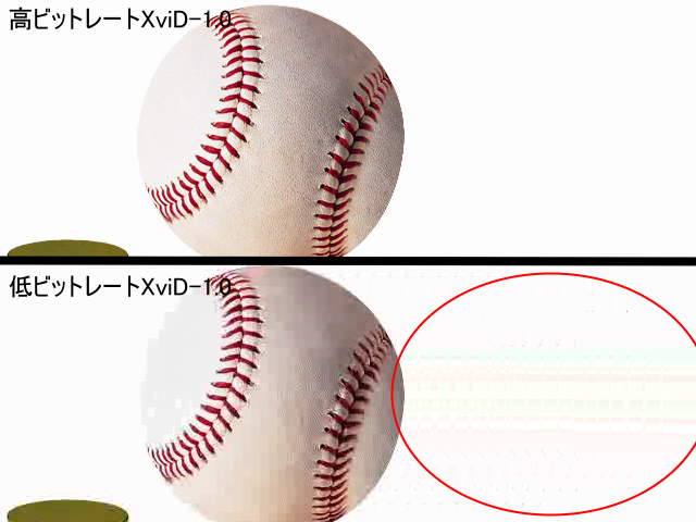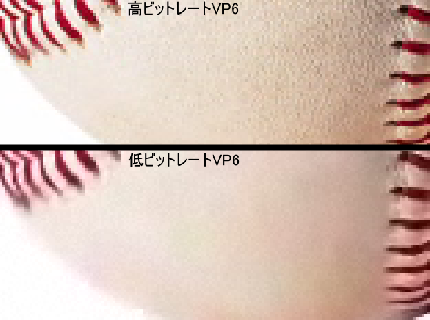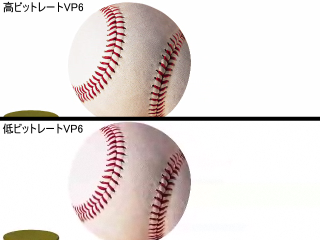 このように、高ビットレートではボールの表面のでこぼこが表現されていますが、