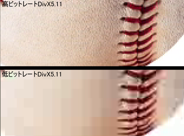 動きの激しい場所では顕著に見られます。DivX5.11とは別のタイプの破綻であることが確認できます。