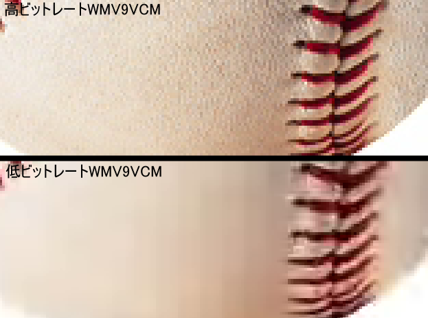 WMV9VCMはブロックノイズが目立たないでぼやけながら画質を保とうとする性質があります。