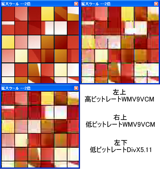 WMV9VCMの高圧縮時のデジタルノイズパターン