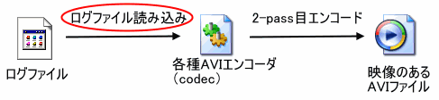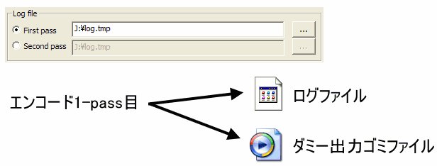 DivXやWMV9VCM、XviDなどのAVIファイルでは2passエンコードモードを使う時に、1回目のエンコードではログファイルを出力します。