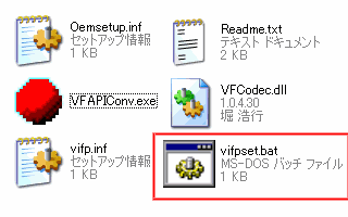 インストールは、vifpset.batをダブルクリックして行います