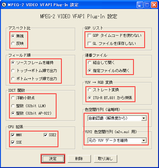 よって、MPEG-2 VIDEO VFAPI Plug-In経由で読み込んだものは、MPEG2にする場合でも再圧縮しなければなりません。