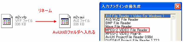 なお、「m2v.aui」の場合は「MPEG2 VIDEO File Reader」として入力プラグインに表示されます。