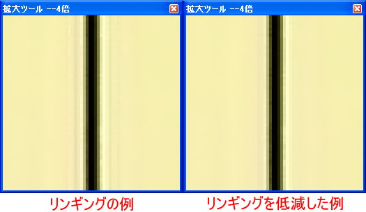 :線の近くの1〜3ドット程度のものは、リンギングです。