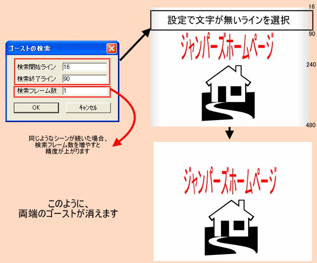 ゴースト除去フィルタはAviUtlのプラグインとして存在していますのでそちらで説明します。