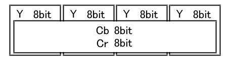 (この場合は、Y成分が横に4つで8×4=32bit、色差成分4つで32bit格納かなぁ・・・)