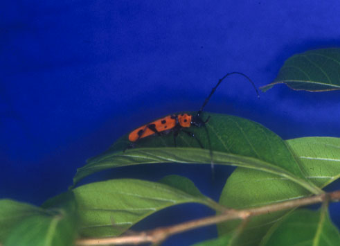 幼虫はウラジロガシの倒木や立ち枯れ木の樹皮下や辺材部を喰っています.