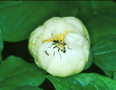 成虫は山地の樹林下に咲いているヤマシャクヤクの花に飛来します.