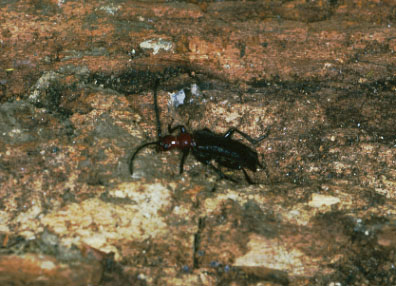 幼虫は生木の洞の中の枯死部を喰っています.