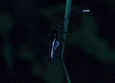 日陰の伐採枝の上を飛翔していますが,白い花にも,よく訪れます.
