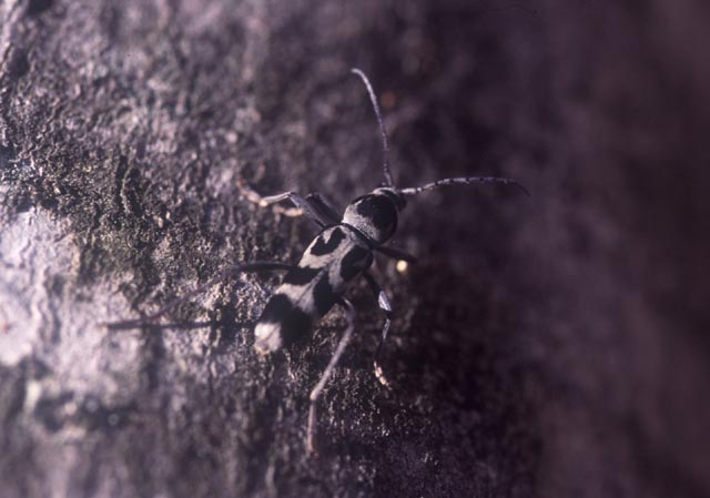 8月中旬、ほかのカミキリが姿を消したころルリボシとクロトラが出現する。