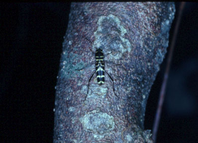 幼虫は各種広葉樹の枯木を喰い,成虫は枯れ枝によく飛来します.